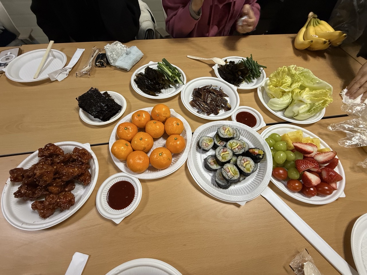 올 해 마지막 가정집회는 유난히 따뜻한 밤이었습니다. 저녁 일곱 시가 되자 각 가정이 준비한 음식들을 들고 삼삼오오 모였습니다. 우리는 김밥 열 줄을 들고 발걸음을 옮겼습니다. 우리 김밥은 흔해 보이지만 나름 ‘오성호텔급’이라는 자부심이 있습니다.